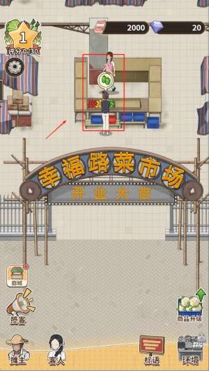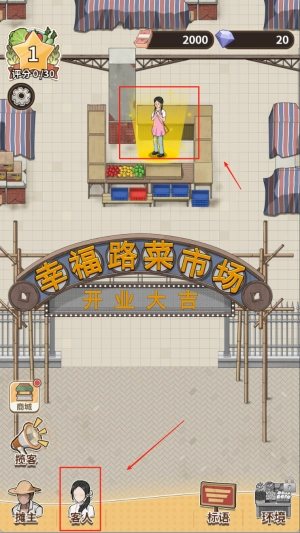 1、进入游戏后,我们需要先招揽摊主,接着再揽客。