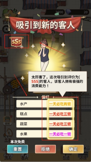 2、每种客人的品质不同,我们可以刷新新的客人。