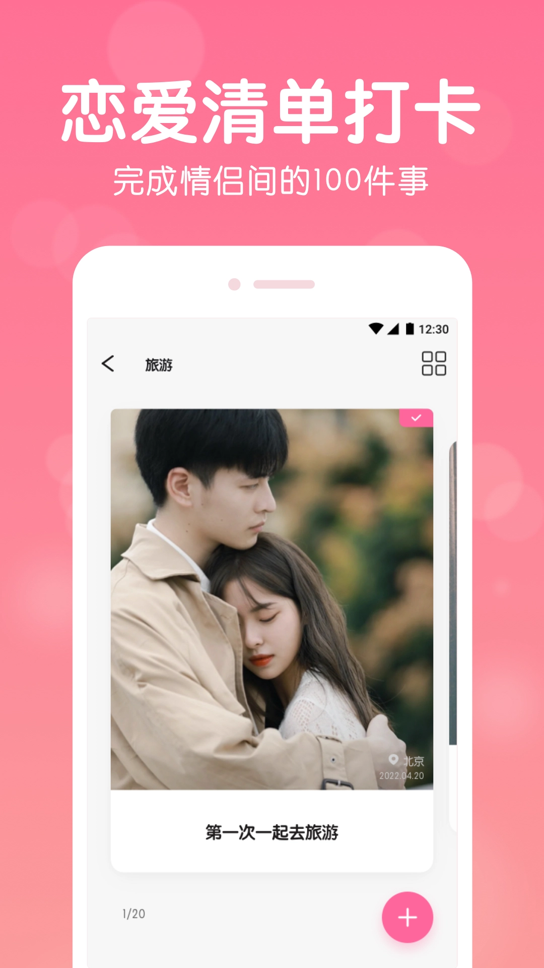 恋爱记录是一款专门为情侣设计的恋爱日记应用,方便用户随时记录恋爱过程中的点点滴滴,涵盖恋爱纪念日、相恋时长、甜蜜回忆、时光相册等内容。无论是温馨的瞬间还是难忘的故事,都能实时留存,不错过每一个值得珍藏的时刻,让时间见证爱情的美好,快来体验吧!