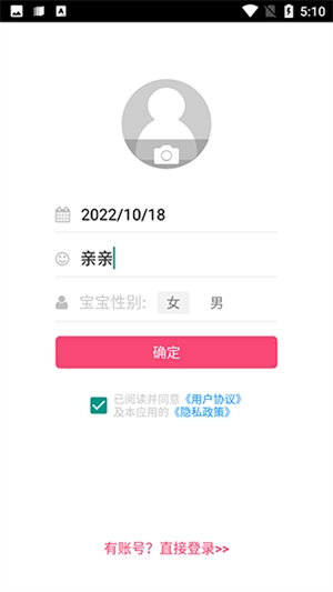 1、后打开软件,输入宝宝出生时间、名字和性别。