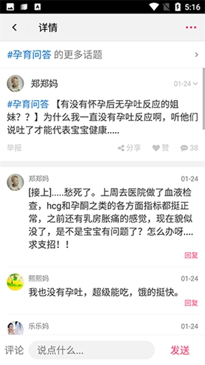 4、打开社区,可以和别的宝妈一起讨论育儿问题。