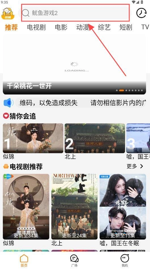 2、搜索视频的操作步骤为:先点击打开软件,接着在搜索框中输入我们想要观看的视频名称并点击搜索。