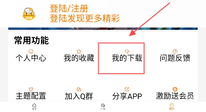 3、完成后返回首页,点击我的进入个人中心