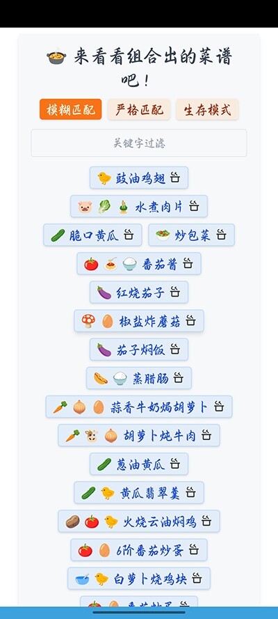 4、用户可选择不同的匹配模式,挑选出更适合的食谱。