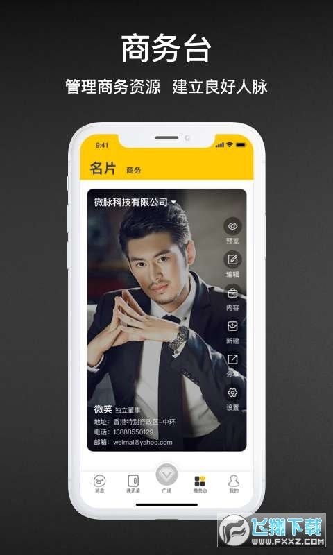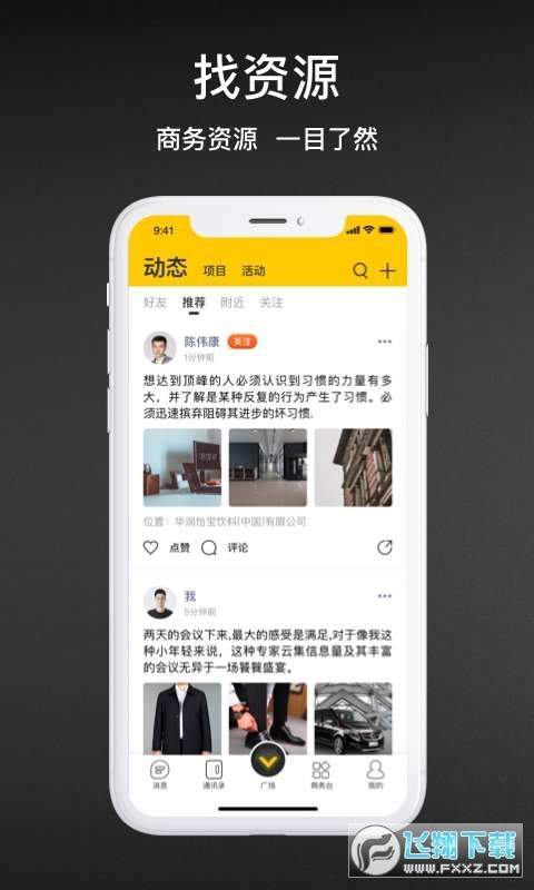 随时记录生活中的精彩片段,在广场发布个人动态;系统会智能推荐有趣内容,还能查询附近的V友。线上支持群内互换智能名片添加好友,也可组织各类活动,甚至能与行业大咖在线互动并加好友,轻松实现商务项目对接、聊天交友与名片互换。