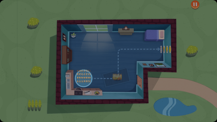 在第二关中,玩家会遇到游戏以来的第一只小猫,画面中白色的虚线就是猫咪所走的路径。只要猫咪不发现我们的间谍鼠,就会一直按照虚线所示的路线走,所以对间谍鼠是构不成威胁的。