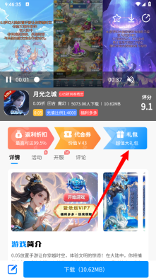 4、在游戏详情页点击"礼包"。