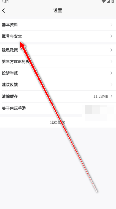 3、进入设置页面点击"账号与安全"。