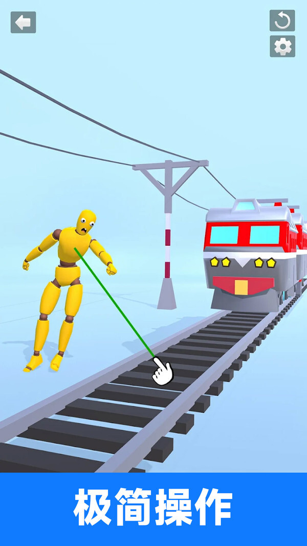 3、游戏操作难度极低,单手即可完成全部操作,只需将布娃娃置于危险区域,就能快速破坏其身体。