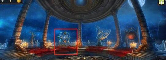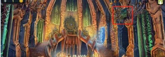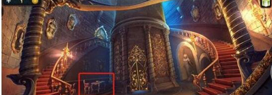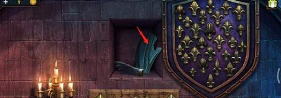 第三个龙纹碎片的获取方法是:从大厅向左走,点击图一所标注的位置,接着点击那两把剑两次,就会有一个龙纹碎片滑落下来。