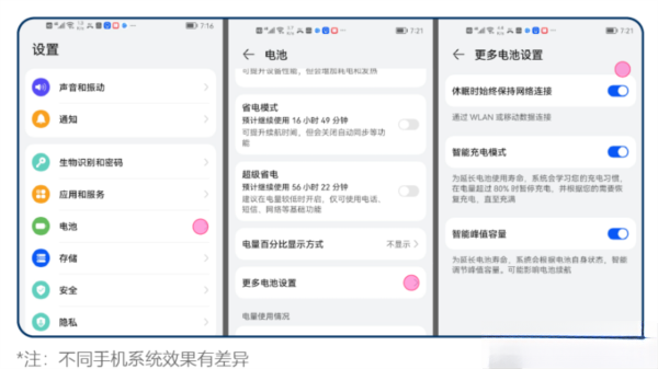 保持手机电量充足并结束相关省电模式与开启休眠时始终保持网络连接。
