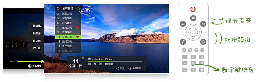 电视设计;轻松操作您喜爱的选择。
