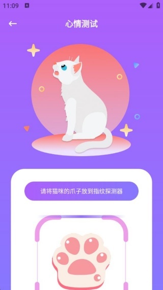 4、点击心情测试,将猫咪的爪爪进行扫描测试。