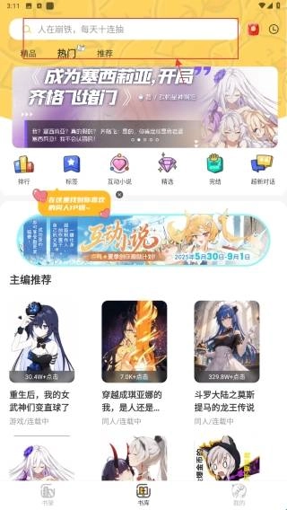 1、在书库页顶部搜索框,输入如【人在崩铁,每天十连抽】等寻找小说。