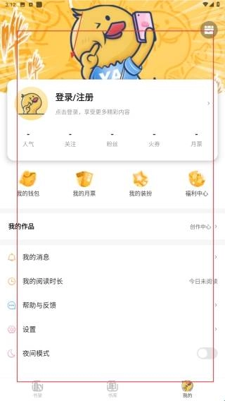 3、进入【我的】页,点【登录/注册】后,可管理钱包、消息、阅读时长等。