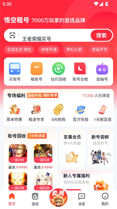 悟空租号是一款专注于游戏账号交易的游戏辅助工具,平台汇聚了各类热门游戏的账号资源,无论是新手账号还是高玩账号,都能在此进行挑选和交易。账号定价公开透明且合理,用户可轻松获得优质的租号、购号体验,畅玩心仪账号并享受相关福利。此外,平台不仅支持用户下单租用或购买账号,还提供闲置游戏账号变现服务,助力用户将闲置资源转化为收益。感兴趣的朋友不妨前来体验!