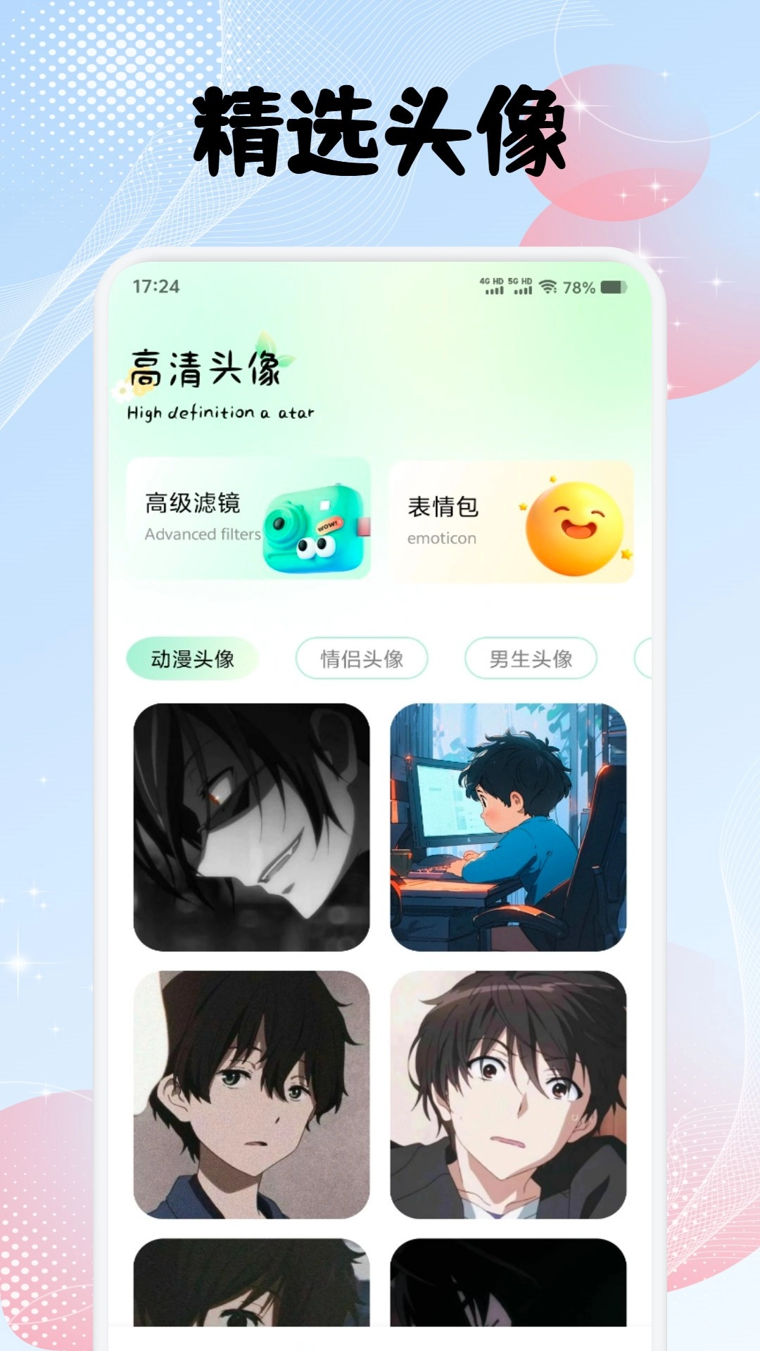 多风格头像免费,支持一键保存至相册用于社交账号。
