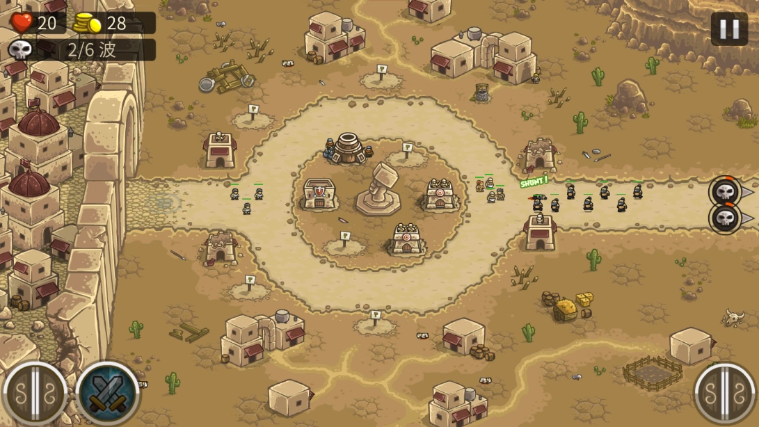 5、虽然只有箭塔和魔法塔能攻击飞行的敌人,炮塔的范围攻击也可以伤害到他们。