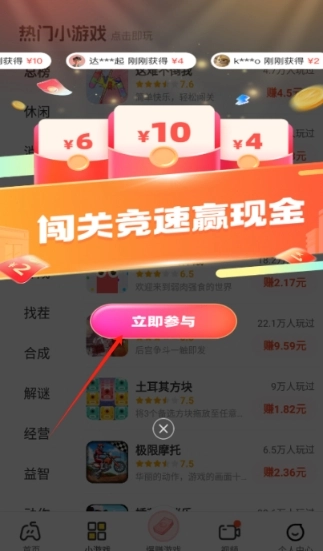 2、通过完成游戏任务或试玩游戏积累红包奖励