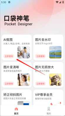 进入首页后,能看到众多功能选项,此时点击“AI抠图”即可。