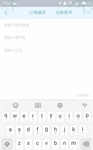 5、点击新写一本,可以看到作品名、章节、文章正文。