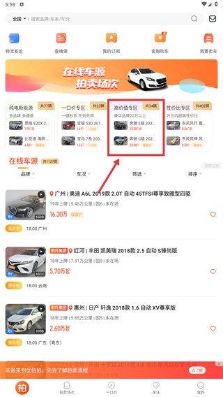 优信拍使用教程 二手车交易服务平台 高价值车辆筛选