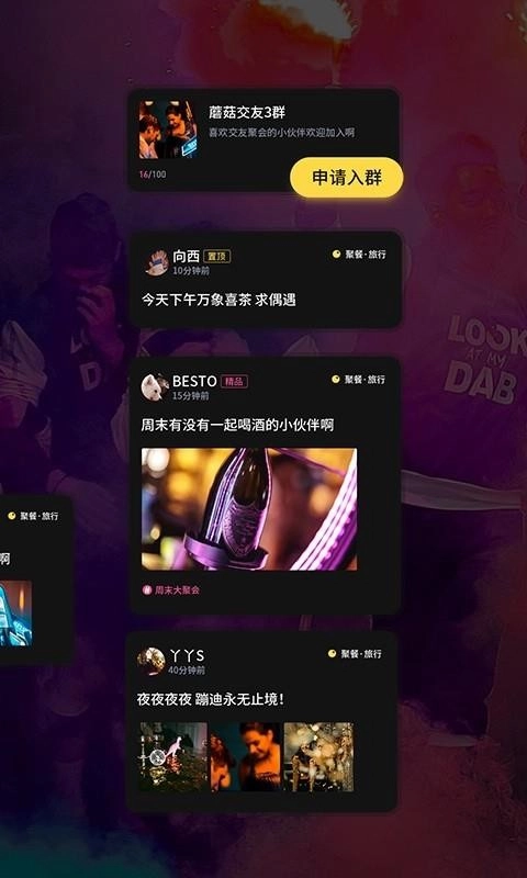 聚会发布更轻松,汇集志同道合的人,打破聚会尴尬;