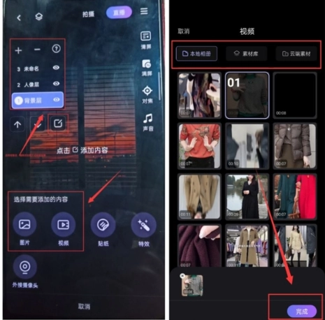 2、背景层编辑,可以添加图片视频,选择自己的商品视频