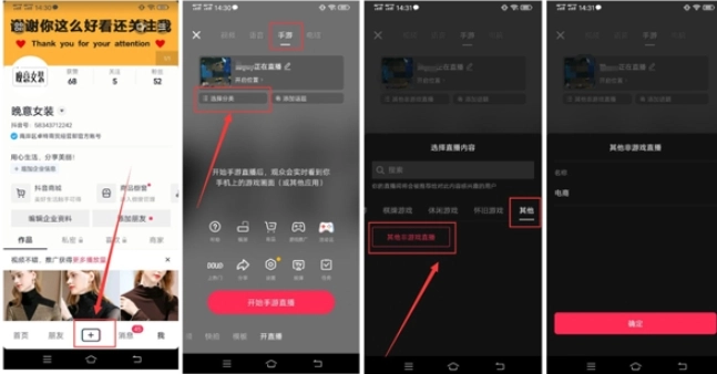 1、点击“+”号,开启直播时选择[],在直播内容分类中选择“其他”下的“其他非游戏直播”,编辑完成后确认
