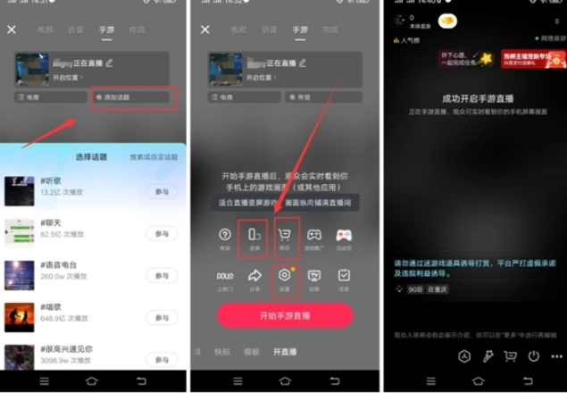 2、接着可以选择添加话题,此时屏幕会切换为竖屏,还能添加商品,等这些都设置好之后,点击开始直播即可。