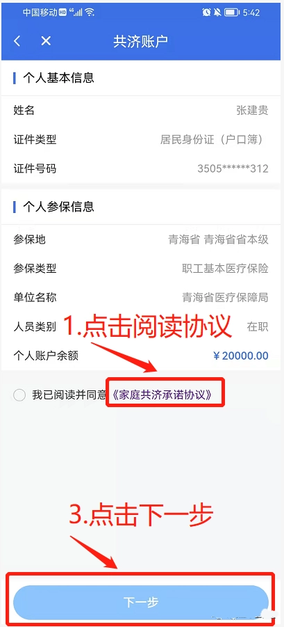 2.随后点击阅读并同意《家庭共济承诺协议》