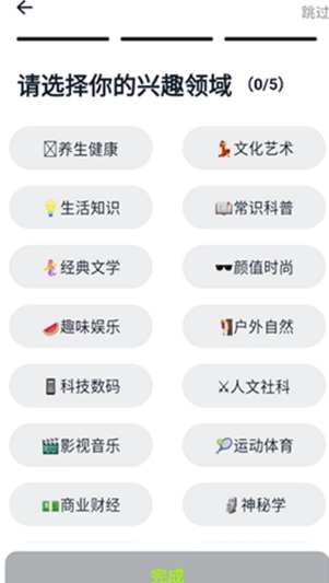 3、选择感兴趣的领域,不想选点跳过即可