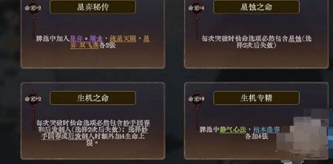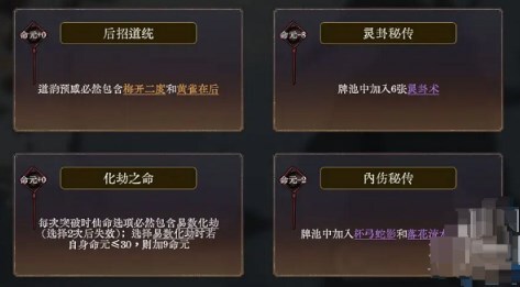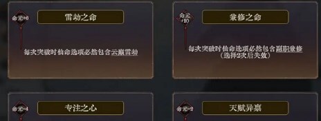 雷劫之命:增加6命元,适合炎尘等固定境界角色。但除特定角色外,不推荐频繁选择。