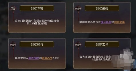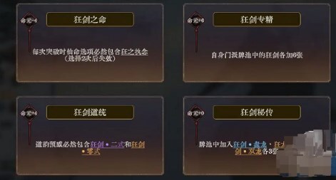 灵剑专精:命元增加8,虽牌组多样,但搜寻难度大,适合熟悉牌库者。