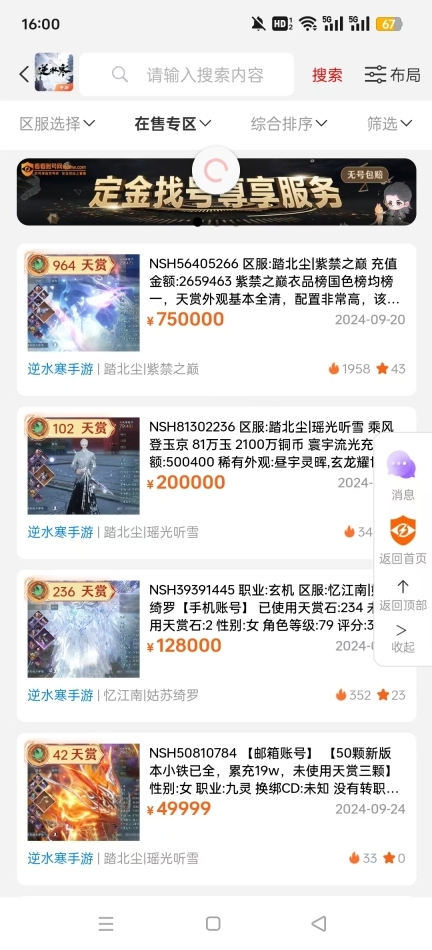 看看账号网始终坚守诚信经营、服务至上的原则,致力于为广大爱好者打造一个安全可靠的账号交易平台。在寻号君这里,每一位客服人员都是玩家们的贴心帮手,他们时刻在线,随时准备为大家解答交易过程中遇到的各类问题,提供专业的售前咨询服务。