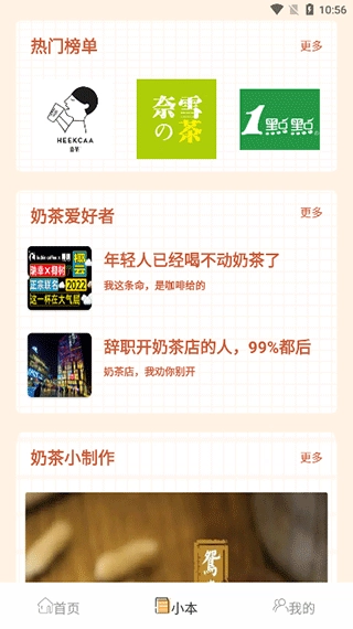 2、小本界面可查看奶茶热门记录、奶茶资讯及制作奶茶的教程