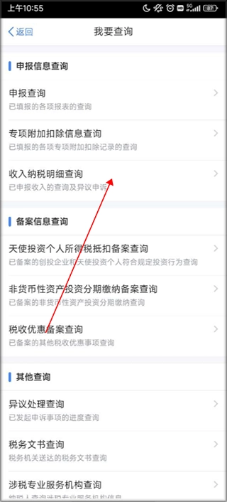 2、进入“我要查询”页面后,点击申报信息查询分类下的“收入纳税明细查询”功能。