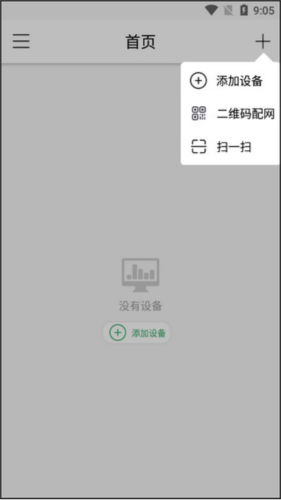 2、点击首页右上角的加号,就能看到添加设备的选项,核心功能便是这个。
