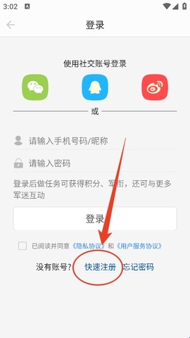 2、然后在登录页点击“快速注册”。