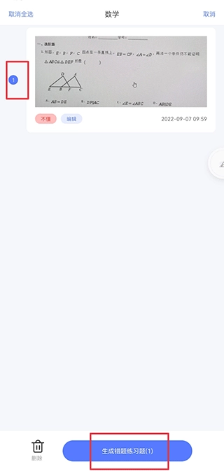 3、勾选后,点击生成错题练习题