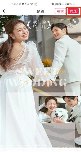 10、点击右上角的“发送”,则可以将请帖发送给好友啦。