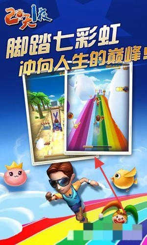1、操控角色在彩虹跑道奔跑,躲避障碍,收集道具,冲向终点。