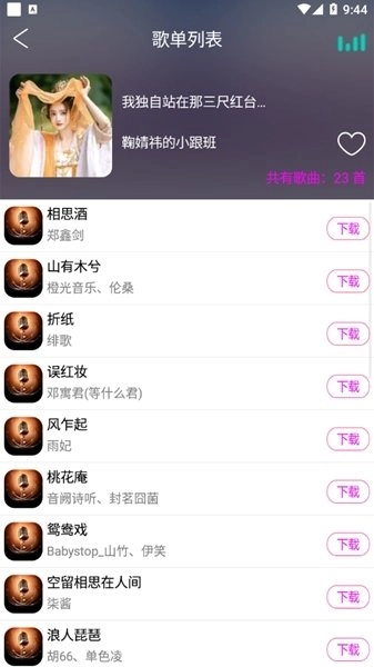 3.在歌单列表中,大家挑选自己喜爱的歌单就行。比如小编选了古风歌单,接着就能看到下图呈现的内容,里面包含着众多古风歌曲。