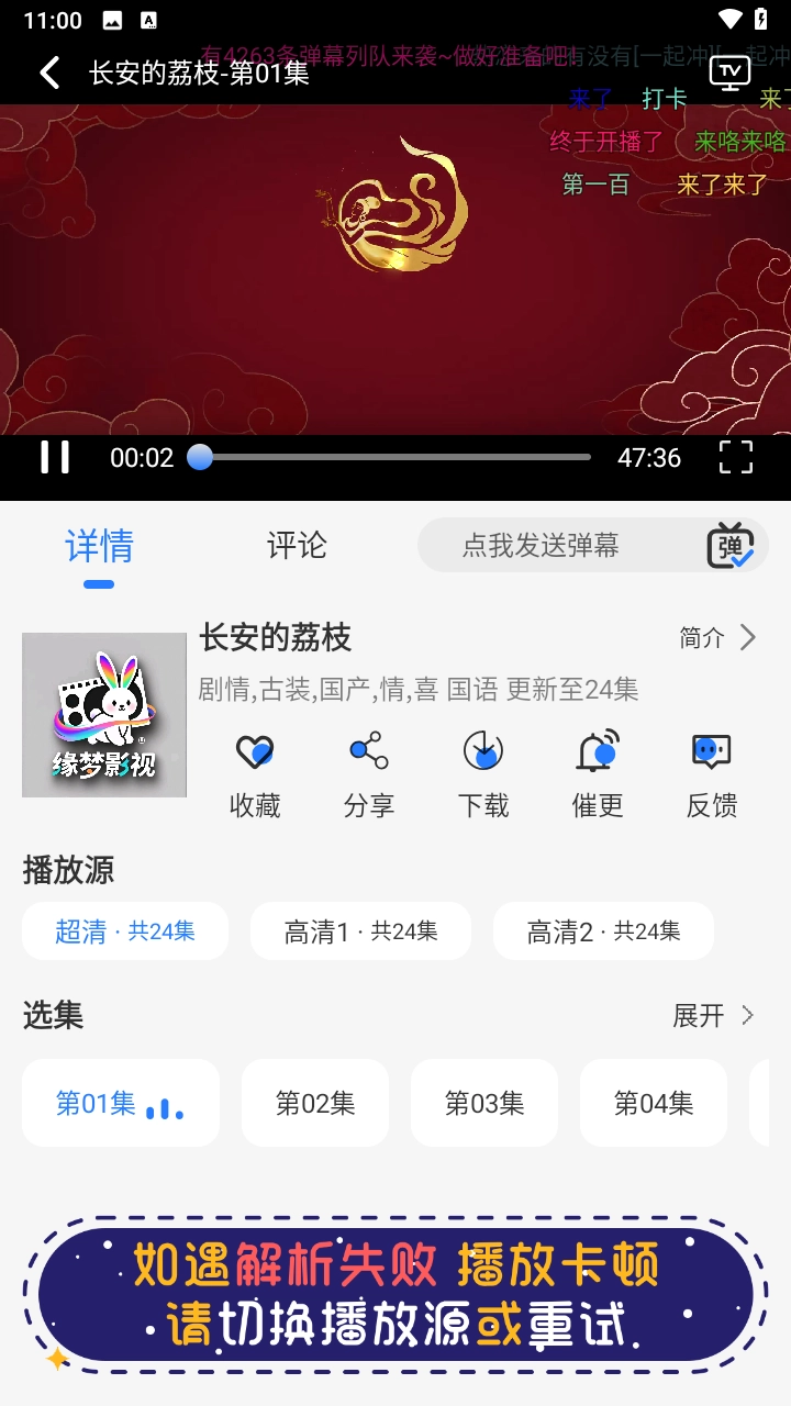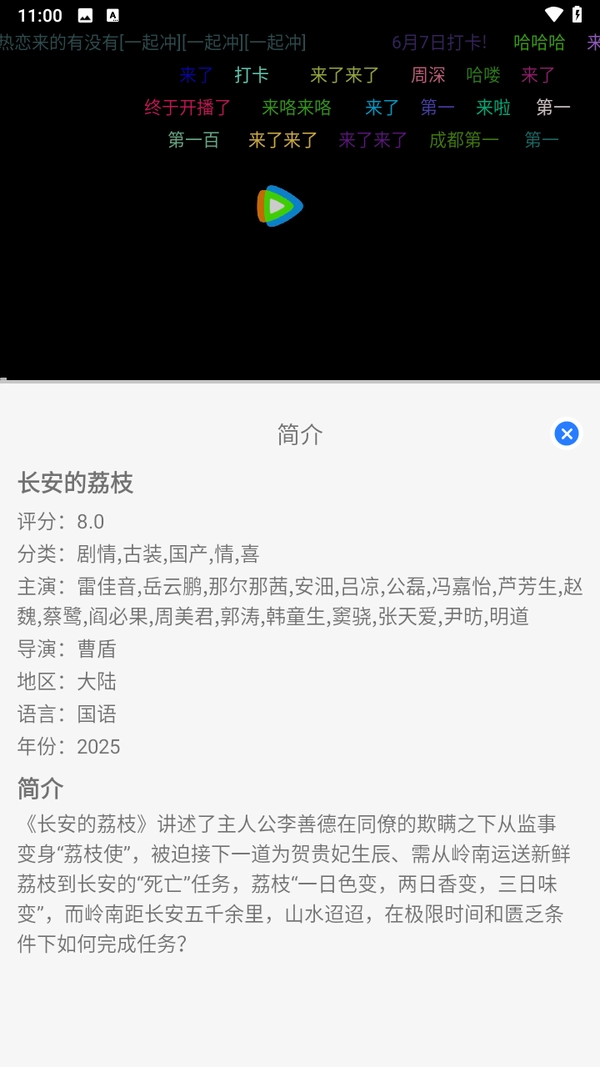 2、然后随意播放一部剧集的内容,在这里小编就以“长安的荔枝”这部剧作为例子。