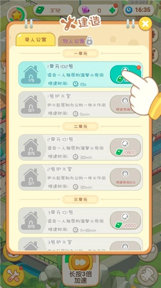 5、当积累了足够的收益后,就能通过持续建造和升级各类房间与建筑,逐步扩大经营的规模。