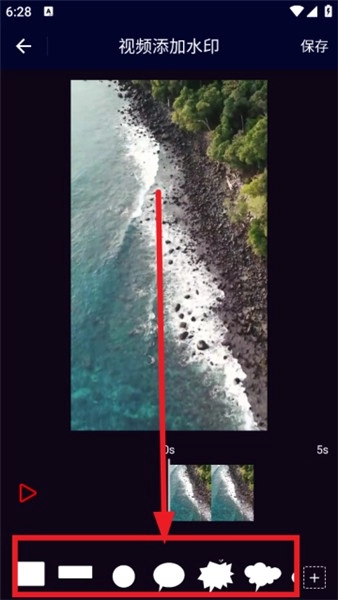 进入编辑界面后,您会看到底部有多种不同形状的水印可供选择。