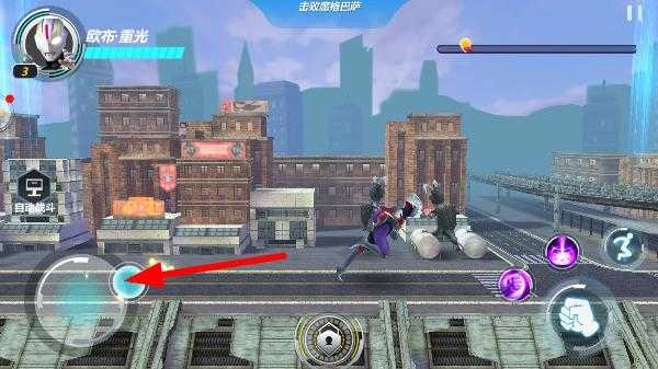 6、进入游戏后会有一段剧情,可选择跳过;跳过剧情后,点击这边的按钮用于控制移动,点击另一边的按钮则是技能施放按钮。