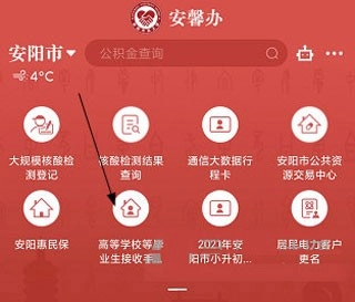 1、打开安馨办主页,找到并点击“高等学校等毕业生接收手续办理”选项。