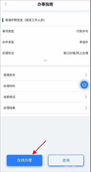 2、然后点击“在线办理”。