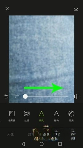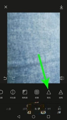5、优化完成后,向左滑动工具栏,点击“锐化”。